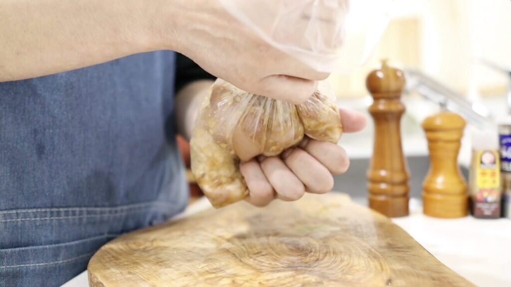 ❍袋の空気を抜いて密着させることで、より短時間でタレが染み込みます