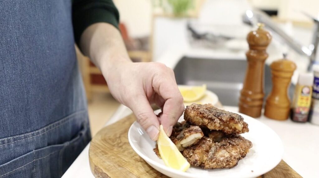 水分をしっかり取って大きめにカットし、片栗粉を2回に分けてつけることで、本格的な食感が生まれます。
