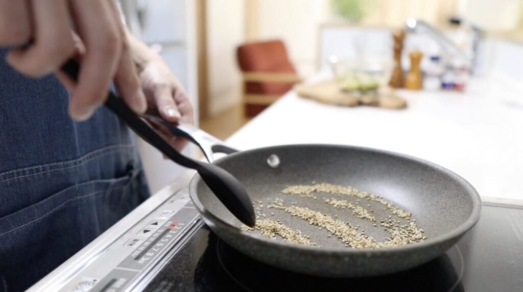 ⚪︎ゴマは時間がたつと香りが飛んでしまします。フライパンで炒ることで香りが復活します
