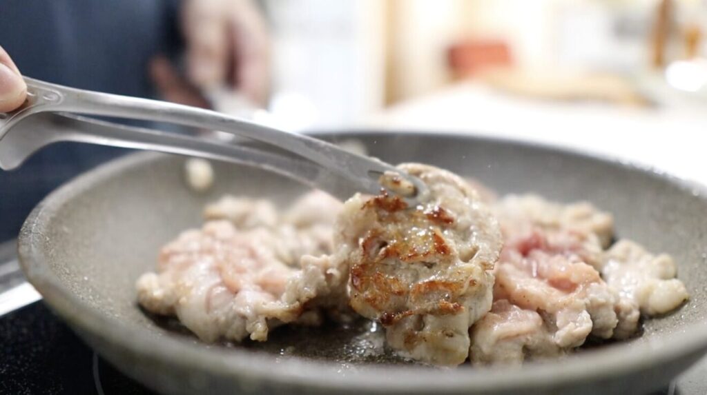 ⚪︎豚こま肉をしっかりほぐさず、ダマになっているぐらいが肉汁が逃げづらくジューシーに仕上がります