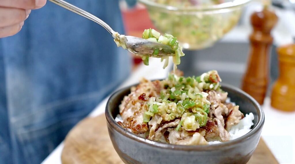 豚肉レシピ丼の中でも人気があるネギ塩豚丼。