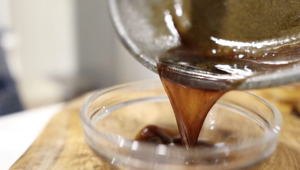 ちょっと濃いかなぐらいで火を止めバターを入れ混ぜ合わせます