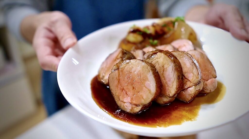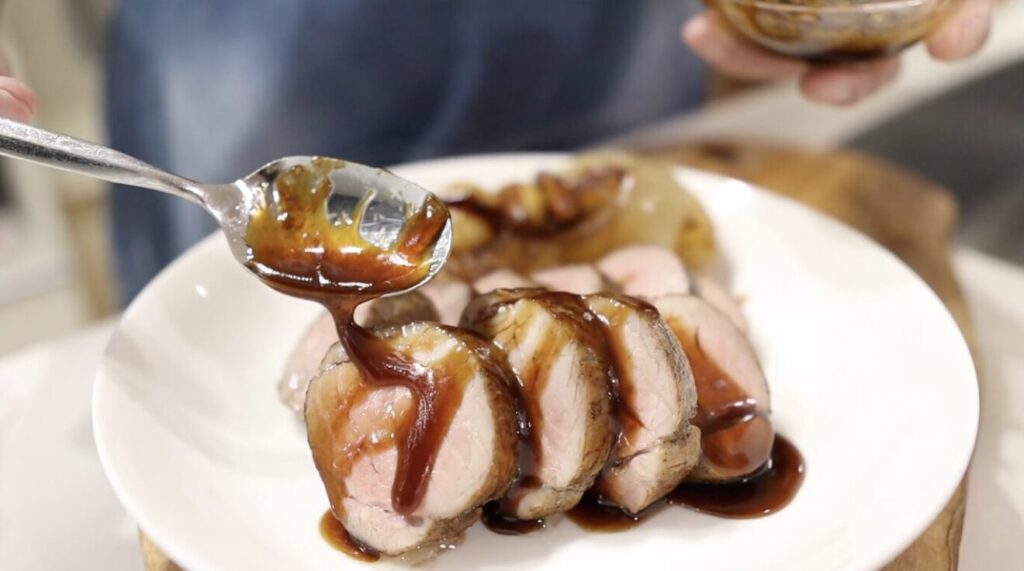 低温でゆっくり火を入れて、特別な器具なしで“店レベル”のローストポークを再現します。