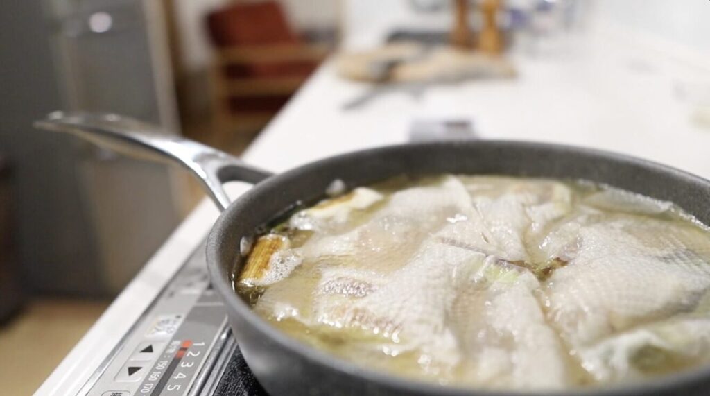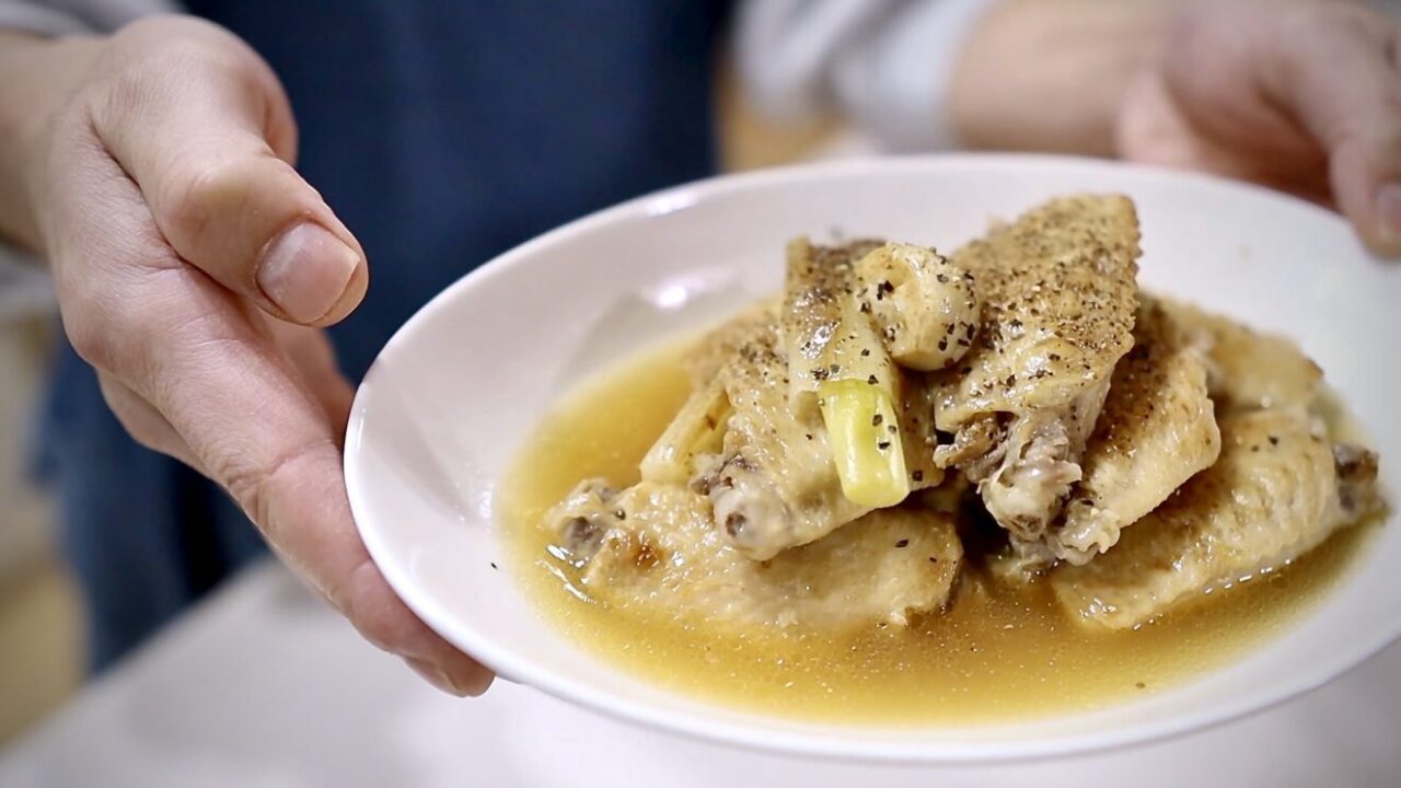 グラグラ沸騰させず、沸々とした状態で煮るだけで、家庭でも“とろとろ”の手羽先煮込みが作れます。