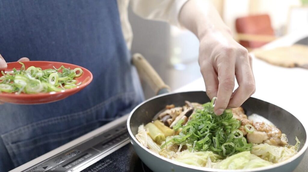 ⑨時間が経ったら蓋を取りネギの青い部分を小口に切り乗せたら完成です